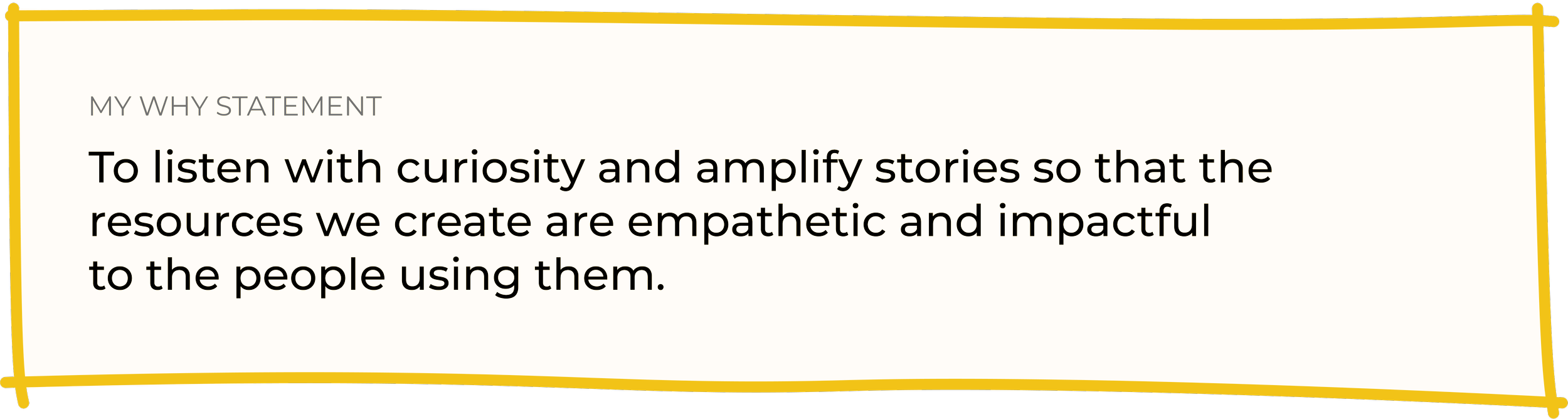 My why statement acts as a filter for where I invest my energy. It gives me something to return to when I'm overwhelmed or pulled in too many directions. Now the real work begins!